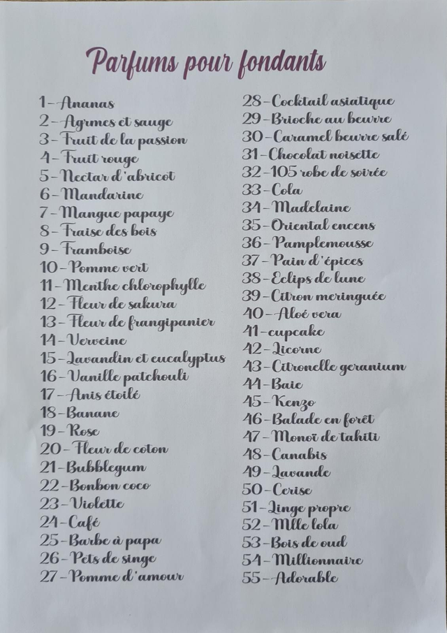 Fondant au doux parfum en forme de gaufre de 10 gr mettre simplement le fondant dans votre brûleur , laissez le fondre pour que celui-ci laisse échapper délicatement la fragrance qu'il contient.Un même fondant peut s'utiliser plusieurs fois (3 à 4 fois). Dès que son utilisation est terminée le fondant va se solidifier et pourra être retiré facilement pour changer de senteur.Fondants en cire de soja 100% végétal , sans OGM , sans pesticides , biodégradable , non testé sur les animaux. Les fondants sont des incontournables. Ils diffusent un doux parfum tout en créant une ambiance chaleureuse dans votre pièce à vivre. Plusieurs parfums disponibles si vous ne trouvez pas votre bonheur n'hésitez pas à me demander.TENIR HORS DE PORTÉE DES ENFANTS